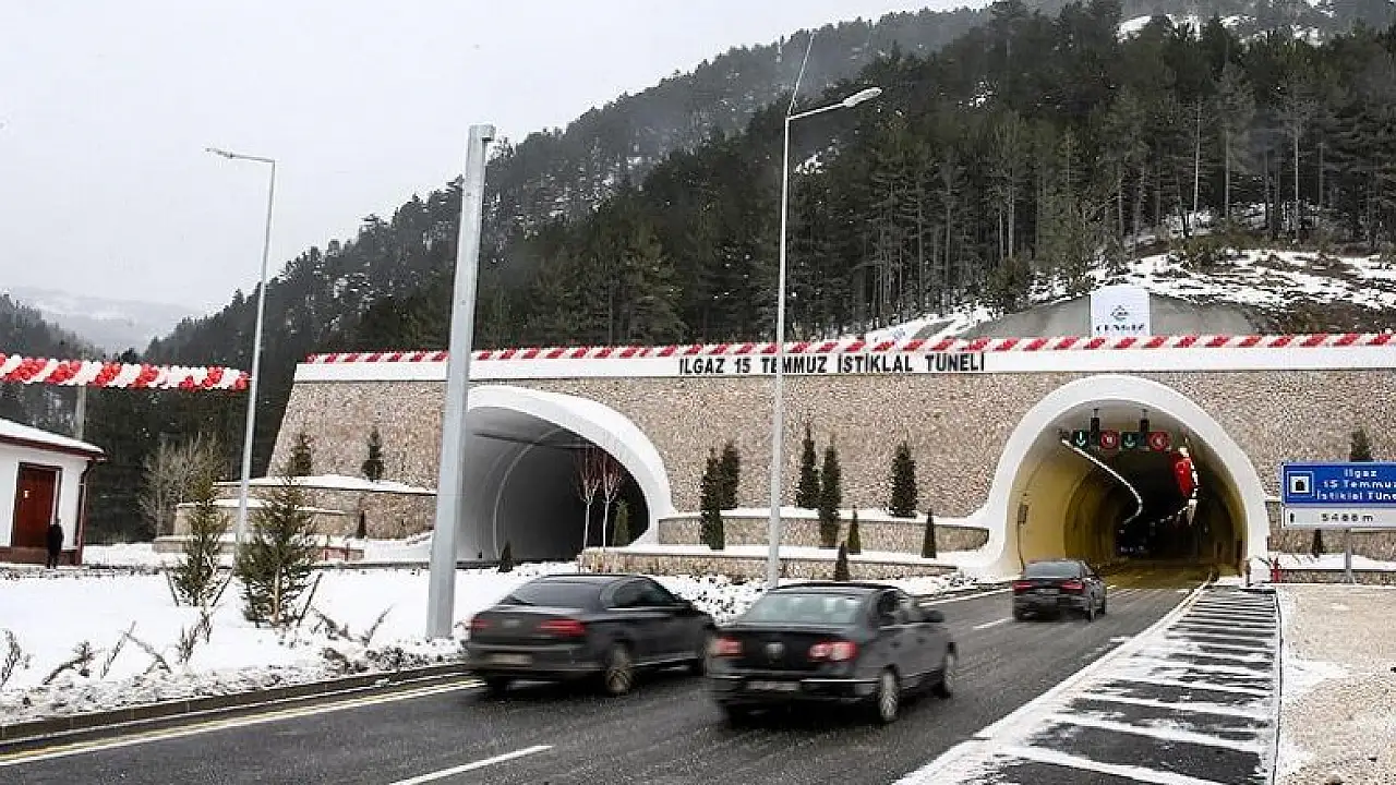 Kış aylarında sürücülerin zor anlar yaşamasına neden olan Ilgaz Dağı'na inşa edilen 'Ilgaz 15 Temmuz İstiklal Tüneli' hizmete açıldı.