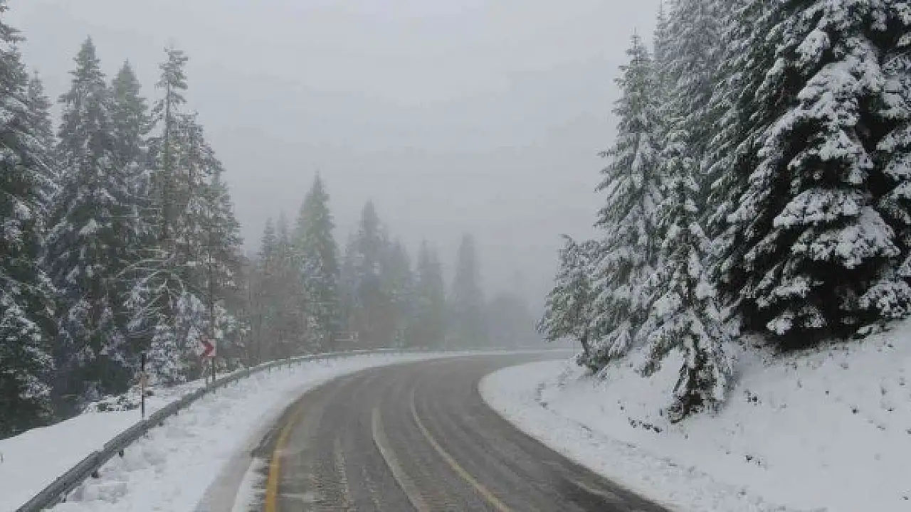 Bölgede etkili olan kar yağışı yerini karla karışık sağanak yağmura bıraktı. Beyaz örtü ile kaplanan Ilgaz Dağı havadan görüntülendi.