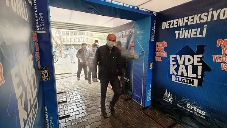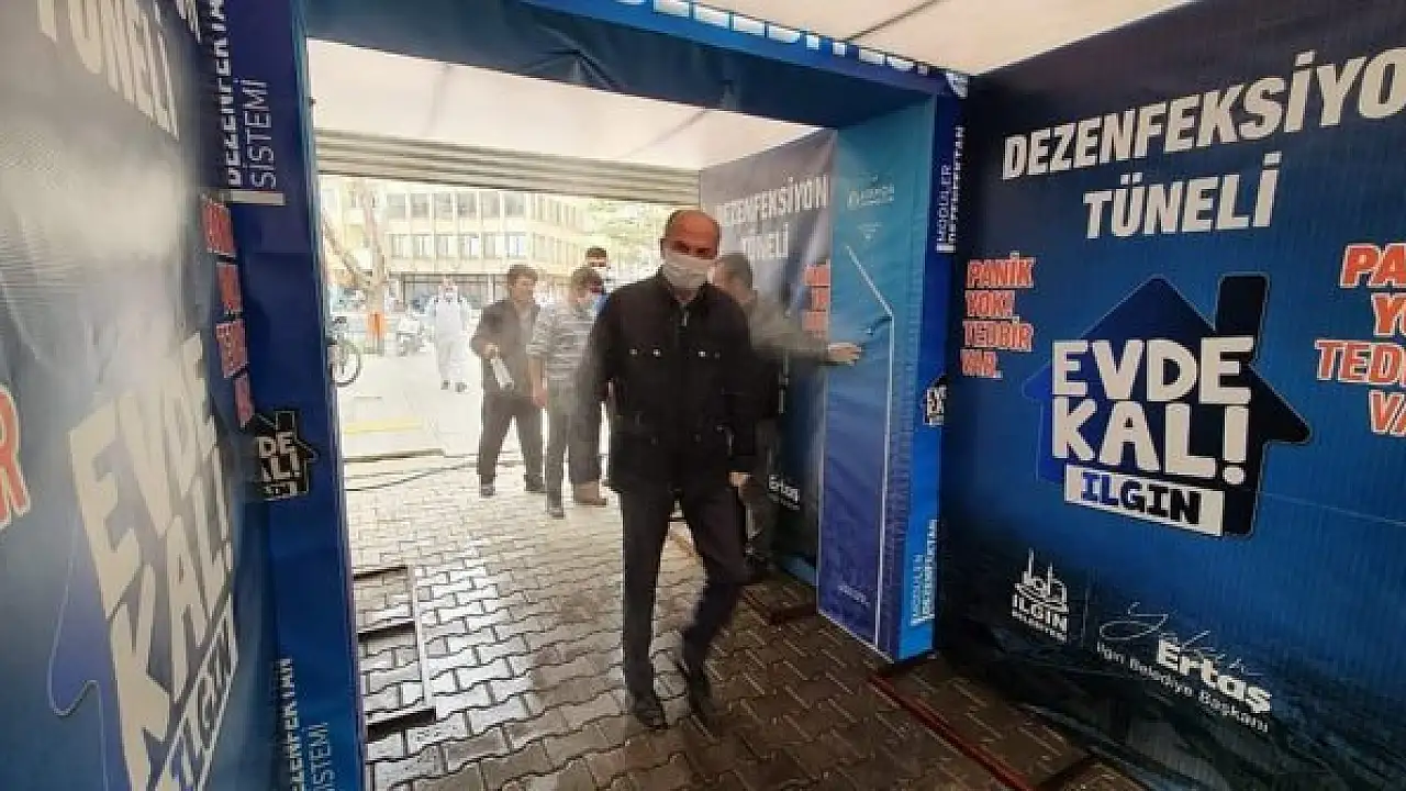 Konya'nın Ilgın İlçesinde Ilgın Belediyesi tarafından kapalı sebze pazarına dezenfeksiyon tüneli kuruldu.