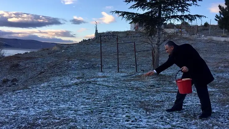"Asırlar öncesinden Hz. Ömer Efendimiz, 'Dağlara buğdaylar serpin, Müslüman ülkede kuşlar aç kaldı demesinler.' sözüyle inancımızda insana verilen değerin yanı sıra her canlının değerli ve anlamlı olduğunu ortaya koymuştur. Biz de soğuk kış şartlarında yiyecek bulmakta zorlanan kuşlar ve sahipsiz hayvanlar için doğaya yem ve ahşap kuş evleri bıraktık. Vatandaşlarımız da bu konuda duyarlı olmalı, yemek atıklarını ve arta kalan ekmeklerini çöpe değil evlerinin önünde bulunan müsait alanlara ve bahçelerinde bulunan müsait yerlere bırakarak doğada yaşayan canlıların beslenmesi için katkıda bulunabilirler." dedi.