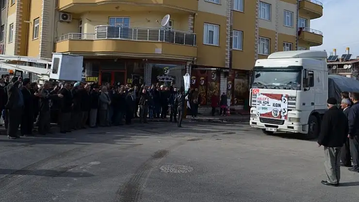 Konya'dan Suriye'ye gidecek yardım konvoyuna katılmak için ilçede yardım kampanyası düzenlediklerini ifade eden Altay, "Sivil toplum kuruluşları ve hayırseverlerin desteği ile Suriye'ye gönderdiğimiz 6. tırımızı da bugün dualarla Konya'ya uğurluyoruz. Halep'te masum insanları katledenleri kınıyoruz. Terör örgütlerini kınıyoruz. Milletimiz büyük bir millet, mazlumların yanında oluyor. Millet olarak inşallah elimizi taşın altına koyacağız, bütün gücümüzle, duamızla hep beraber bu zulme karşı mazlum insanların yanında olacağız." diye konuştu.