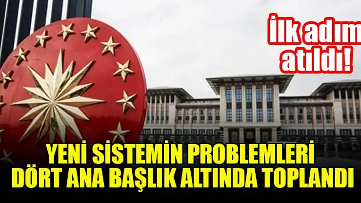 Cumhurbaşkanlığı hükümet sisteminin aksayan yönlerinin çözümü için ilk adım atıldı. Bu doğrultuda AK Parti'nin hukukçu kurmayları ortaya çıkan problemleri dört ana başlıkta topladı ve çözüm önerilerini belirledi.
