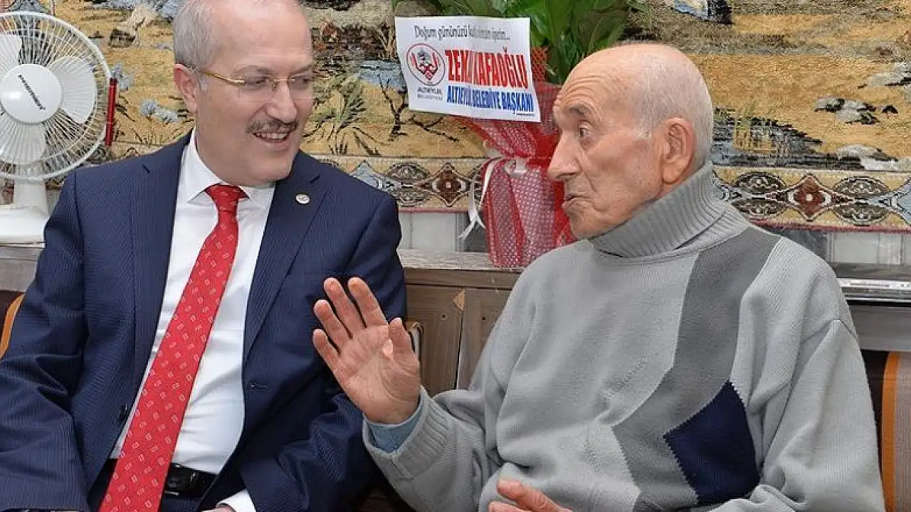 Kafaoğlu, yalnız yaşayan ve şimdiye kadar hiç doğum gününü kutlamayan Gümüşçeşme Mahallesi sakinlerinden Keskinkılıç'ı evinde ziyaret etti.