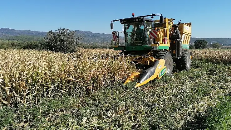 Manisa'nın Kırkağaç ilçesinde Ziraat Odasının öncülüğünde ilk kez ekimi gerçekleştirilen tohumluk mısırın hasadı yapıldı.