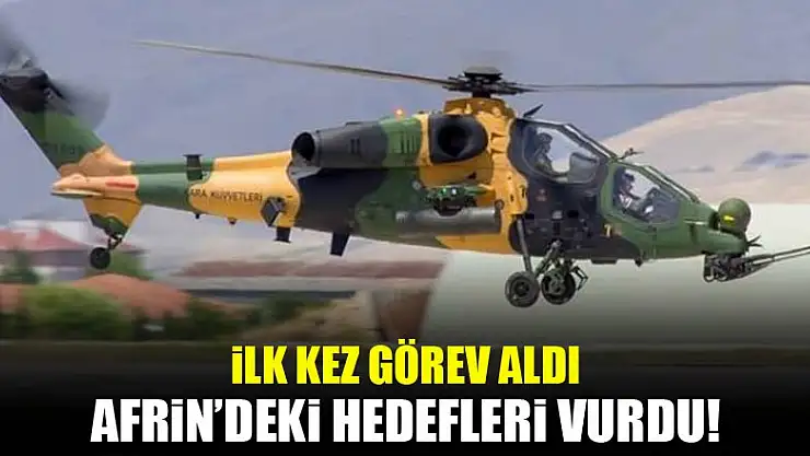 Türk Silahlı Kuvvetlerinin (TSK) 'Zeytin Dalı Harekatı' kapsamında ilk kez görev alan yerli üretim T-129 ATAK helikopteri, Afrin'in batısındaki terör hedeflerini vurdu.