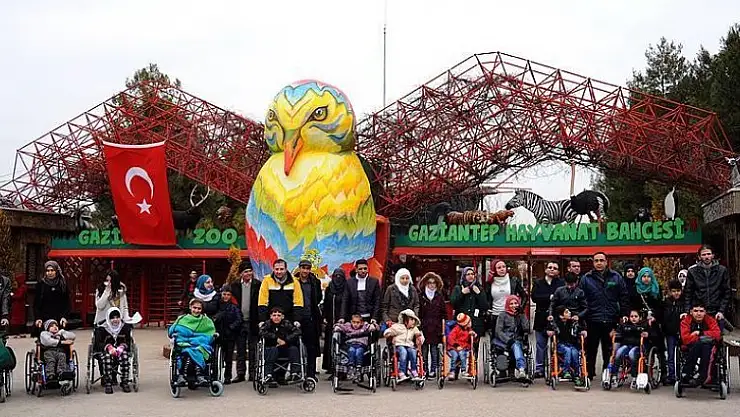 Bedensel engelli 18 Suriyeli çocuk, Gaziantep'teki Türkiye'nin en büyük hayvanat bahçesini gezdi.