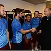 Varşova'da oynanan Legia Varşova - Trabzonspor maçını stadyumda izleyen Başbakan Erdoğan, maç sonrası soyunma odasına inerek futbolcuları tebrik etti.