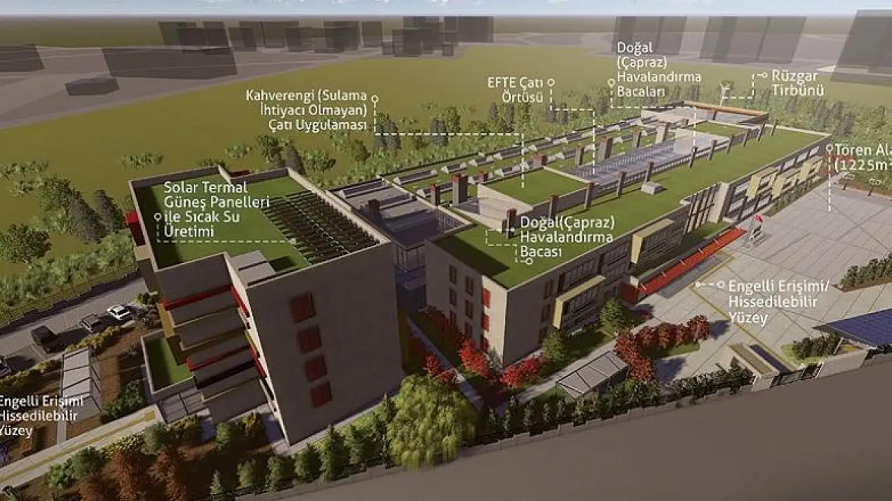 Türkiye'nin ilk yeşil kamu binası olma özelliği taşıyan ve yapımına 23,4 milyon lira harcanan lise binası yüzde 70 enerji tasarrufu sağlayacak