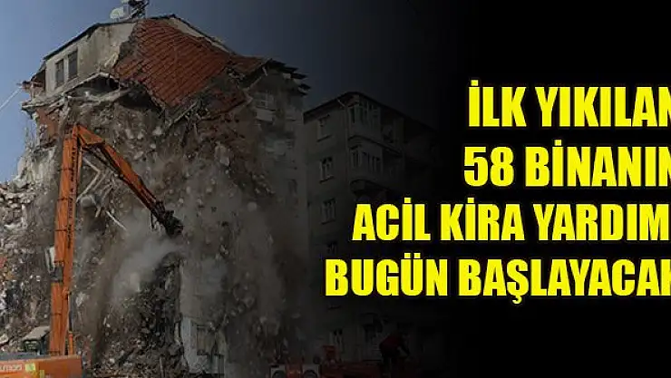 İlk yıkılan 58 binanın acil kira yardımı bugün başlayacak