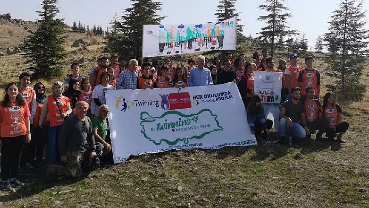 Konya'da, 'eTwinning Ateşi Her Yerde' projesi ile 750 orman fidanı toprakla buluşturuldu.