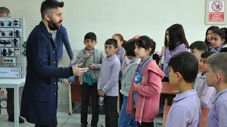 İlkokul öğrencileri meslek lisesi öğrencilerinin çalışmalarını inceledi