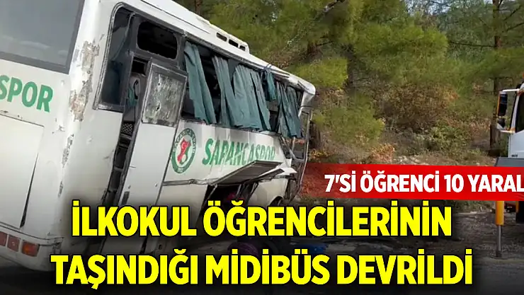 Sakarya'nın Pamukova ilçesinde ilkokul öğrencilerinin taşındığı midibüsün devrildiği kazada 7'si öğrenci 10 kişi yaralandı.
