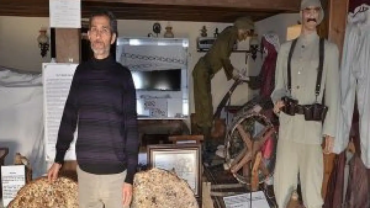 Çanakkale Kara Savaşlarında destanlar yazan 57'nci Alay'ın düşmana karşı harekete geçtiği Bigalı köyünde imamlık yapan Tosun, kurduğu müzede çevresinden satın aldığı savaştan kalan eşyaları sergiliyor.