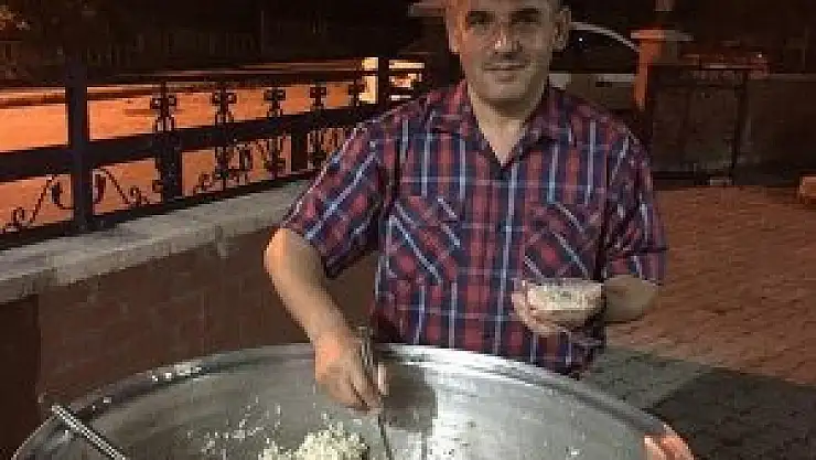 Bir caminin imam hatibi Yusuf Dalkılıç, hayırseverlerin katkısıyla her gün yatsı namazının ardından cemaate yemek ve tatlı ikramında bulunuyor.