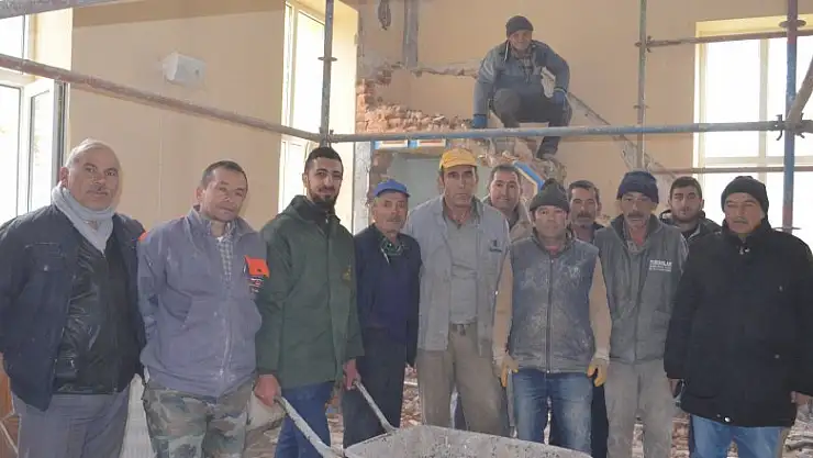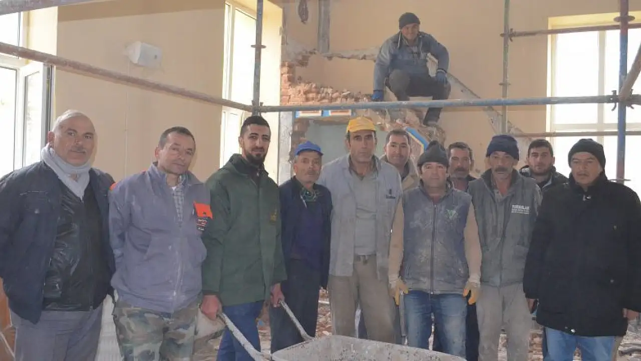 Konya'nın Ilgın ilçesine bağlı Mahmuthisar Mahallesi'ndeki köylüler, köy camisini imece usulüyle tadilata başladı.
