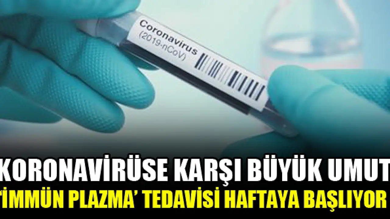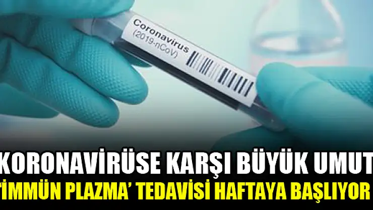 Koronavirüse karşı kullanılacağı açıklanan 'immün plazma' tedavisi gelecek hafta devreye alınacak. Tedaviyle virüs tanısı konulan, tedavi sürecinin ardından iyileşen hastalardan alınan ve Kızılay tarafından toplanan kan plazmaları ağır durumdaki vakalarda kullanılacak.