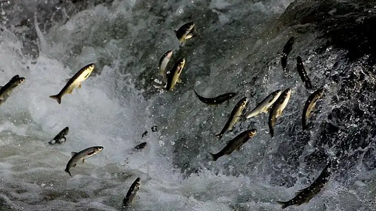 Van-Ağrı karayolu Erciş Balık Bendi mevkisindeki Deli Çay'da üreme döneminde suyun akışının tersine yüzerek tatlı sulara göç eden inci kefalinin yolculuğu görsel bir şölen sunuyor.