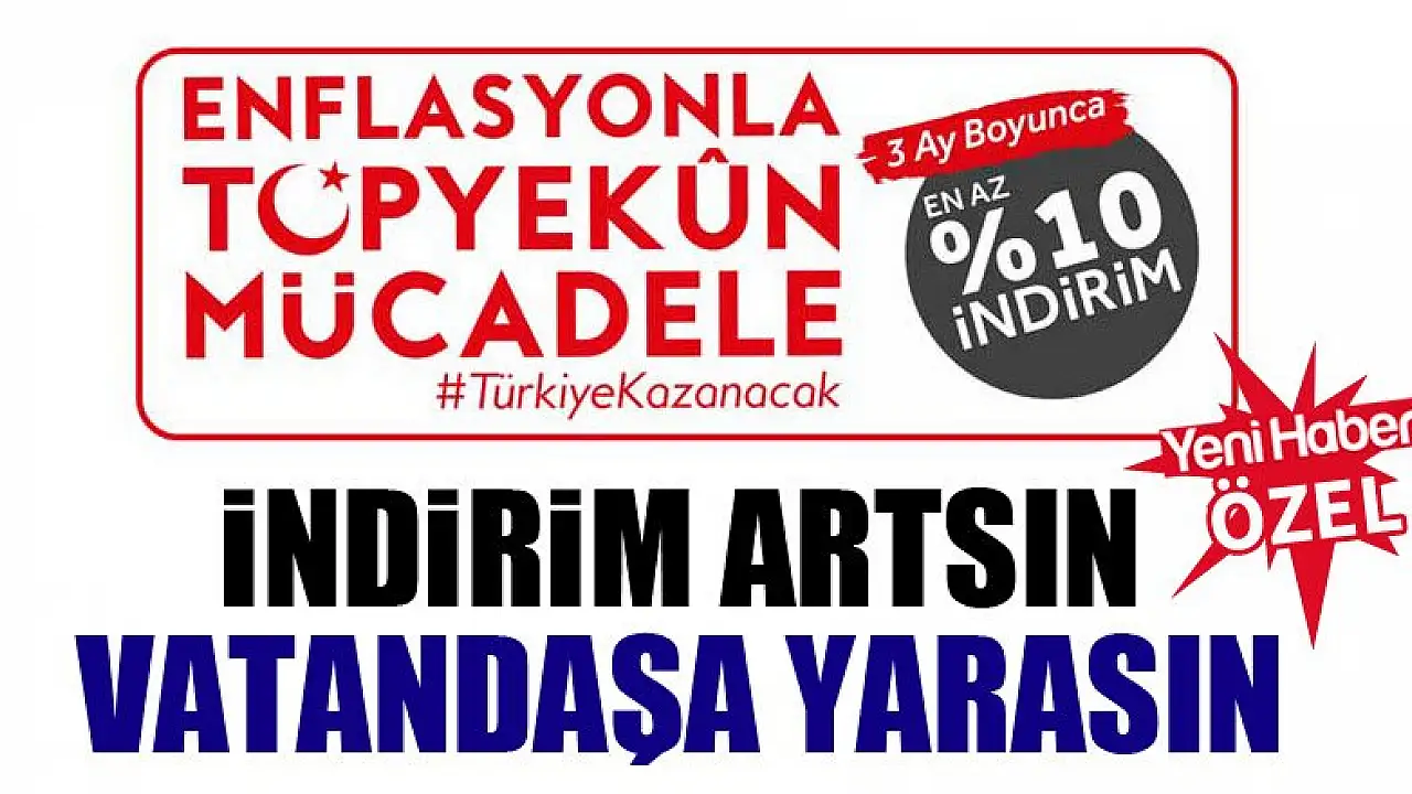 Hazine ve Maliye Bakanı Berat Albayrak’ın, ‘Enflasyonla Topyekun Mücadele Programı’ kapsamında firmalara yüzde 10 indirim yapılması çağrısına destek çığ gibi büyüyor. İndirim kampanyasına katılanların sayısı günden güne artarken, firmalar, yılbaşına kadar zam yapmayıp asgari yüzde 10 indirim uygulayacak. Kampanyaya Konya’dan da çok sayıda firma katılım sağlamıştı. Konyalı vatandaşlar ise indirimin faydalı olacağını, bununla birlikte de daha çok gıda, barınma, enerji ve eğitim konularında indirim yapılması gerektiğini vurguladılar.