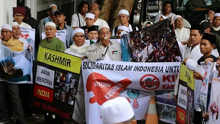 A group of protestors on Wednesday held a demonstration in front of India's embassy in the Indonesian capital of Jakarta, marking the Kashmir Solidarity Day falling on Feb. 5