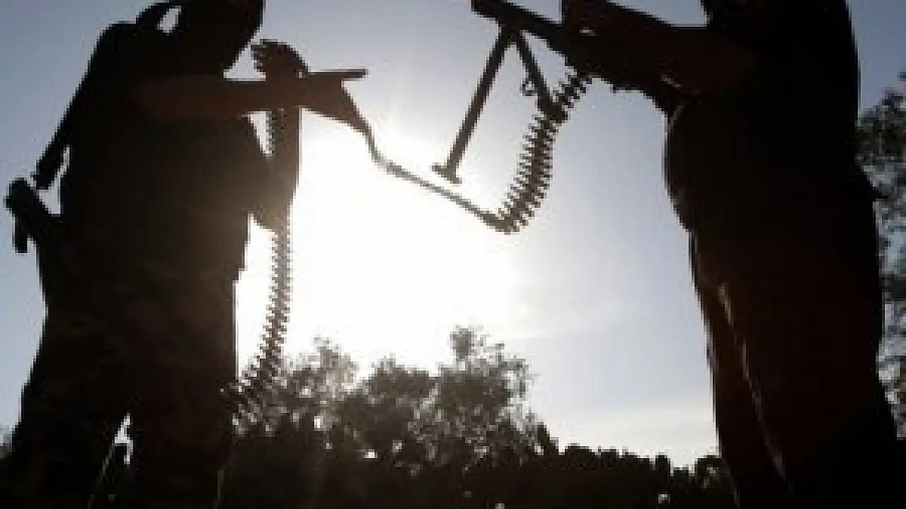 Kuzey Irak'ta bir grup peşmerge bir telsizin çevresinde toplanmış yakaladıkları konuşmayı dinleyip 'Kebap', 'Salata' diye bağırıyor."