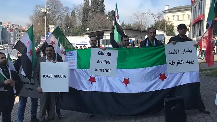 Beyoğlu Tepebaşı'nda bulunan İngiltere'nin İstanbul Başkonsolosluğu önünde toplanan gruptakiler, "Guta'da siviller katlediliyor", "Guta'daki sivilleri kurtarın", "Guta'nın umudu sizlersiniz" şeklinde dövizler taşıdı. Çeşitli sloganlar atan gruptakiler, "Doğu Guta"ya karşı sessiz kalınmasına tepki gösterdi.