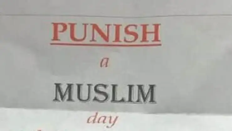 “Bir Müslüman'ı Cezalandır” başlıklı mektupta Müslümanlar “tehdit” olarak gösterilirken, 3 Nisan tarihinde “beyaz çoğunluk", bir Müslüman'a zarar vermeye davet ediliyor.