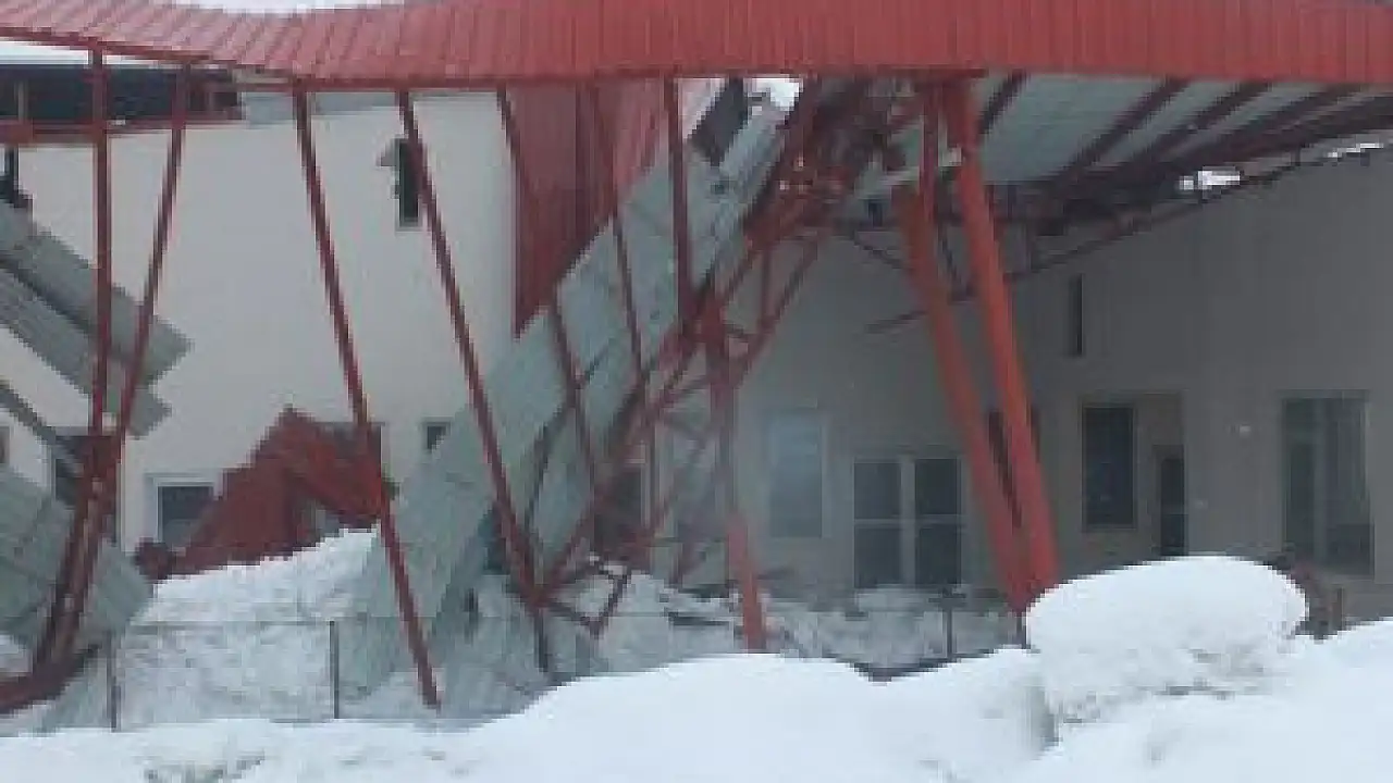 Hakkari'de etkili olan kar yağışı, yapımına 2014 yılında başlanan ve baharda açılması beklenen sebze halinin çatısını çöktürdü.