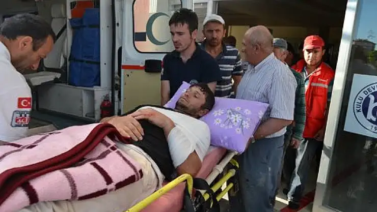 Olay, ilçeye bağlı Fatih Sultan Mehmet Mahallesi Katır Tepesi mevkiinde meydana geldi. Edinilen bilgiye göre, inşaat halindeki bir binanın tavan kalıplarını sökmeye çalışan İsmail D., üzerinde durduğu kalasta dengesini kaybedince 5 metre yükseklikten düştü. Yaralanan inşaat işçisi, çevredeki vatandaşların çağırdığı ambulansla Kulu Devlet Hastanesi’ne kaldırıldı. Tedavi altına alınan İsmail D.'nin vücudunun çeşitli yerlerinde kırıkların bulunması üzerine Konya’ya sevke edildiği öğrenildi.