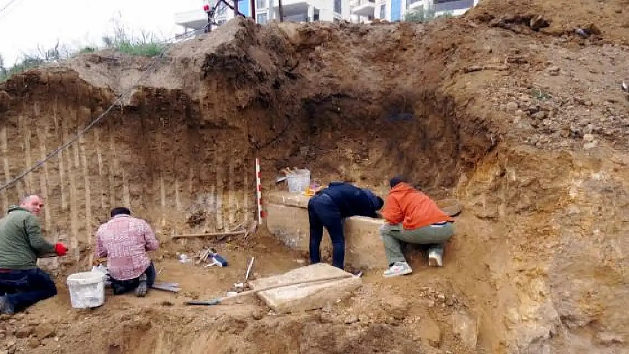 Bursa'nın Mudanya ilçesinde bir inşaat alanında kazı yapılırken lahit bulundu.