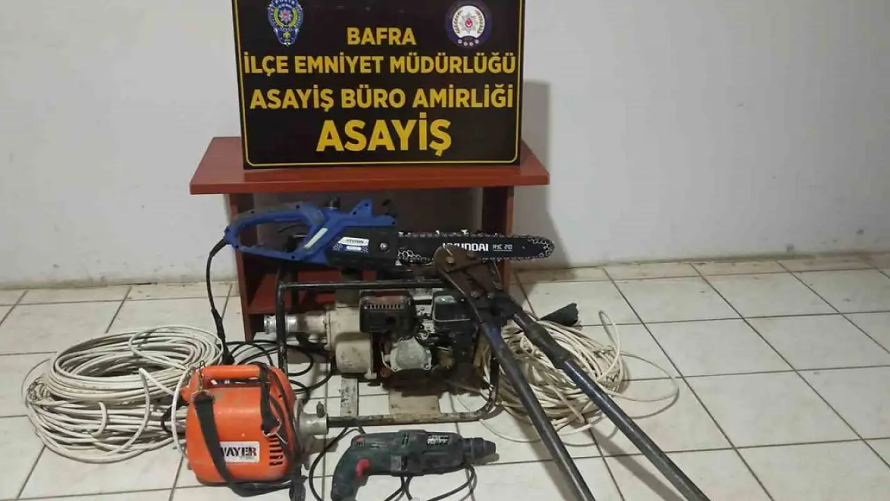 Edinilen bilgiye göre, 1 hatta önce Fatih Mahallesi 2. Sokak'ta bulunan F.K'ye ait inşaatın deposundan 3 parça elektrik kablosu, 1 adet matkap, 1 adet elektrikli hızar, 1 adet beton vibratorü, 1 adet su motoru ve 2 adet demir kesme makası çalındı. İnşaat sahibi polisi arayarak durumu bildirdi. Çalışma başlatan İlçe Emniyet Müdürlüğü Asayiş Büro Amirliği ekipleri yaptıkları çalışmalar sonucunda kimliğini belirledikleri F.Y.'yi inşaattan çaldığı malzemelerle birlikte Büyük Cami Mahallesi'nde yakalayarak gözaltına aldı.