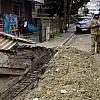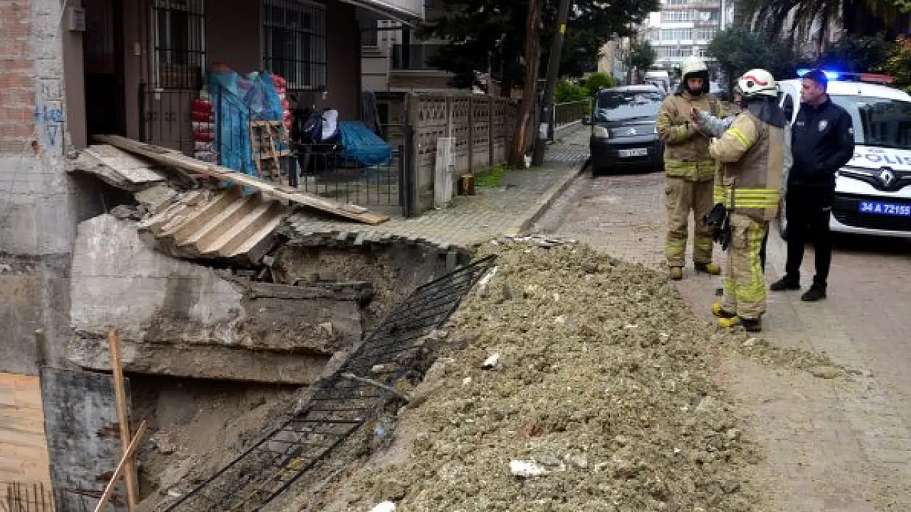 AVCILAR'da inşaatın yanındaki apartmanın girişindeki duvar ve merdivenler çöktü.