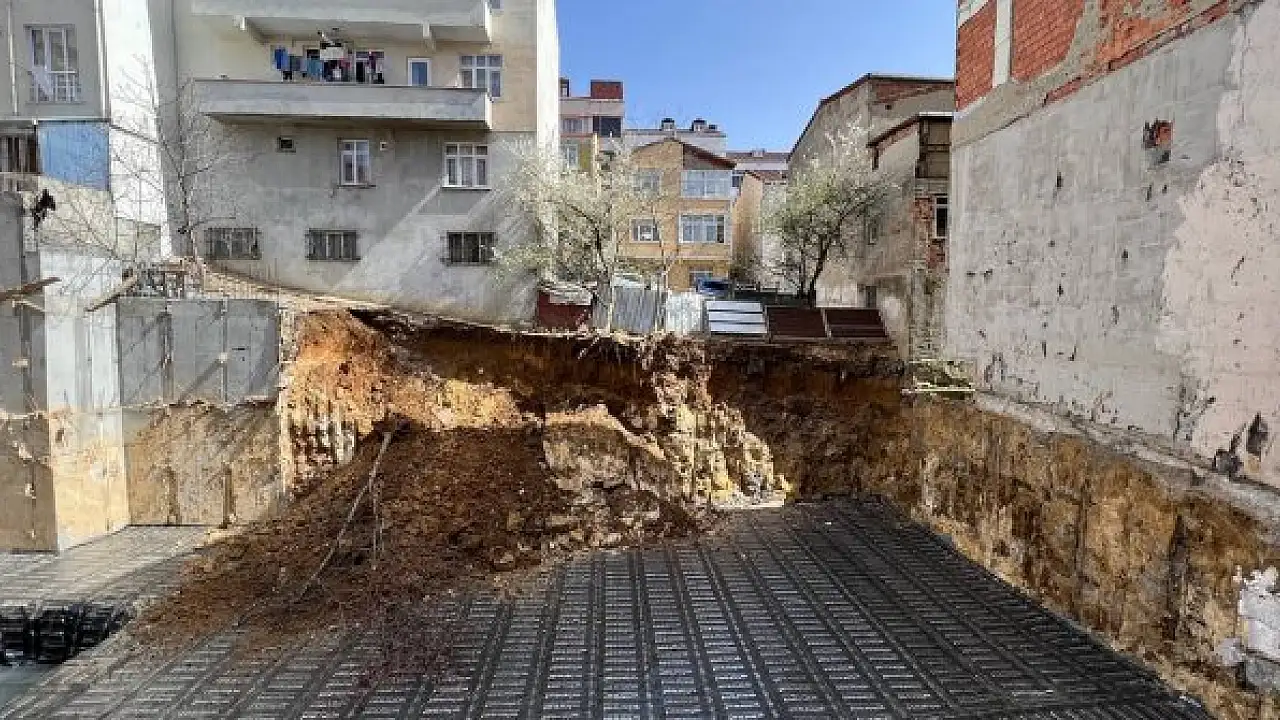İnşaatta toprak kayması yanındaki bina boşaltıldı