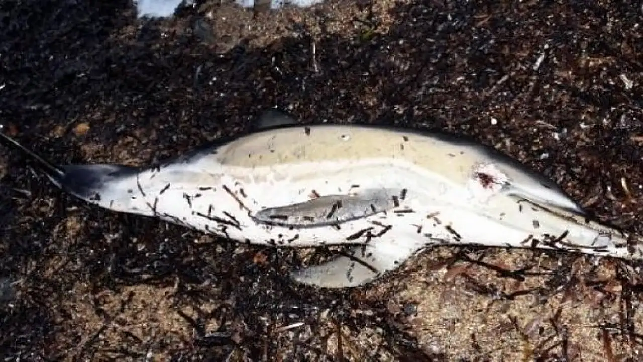 Muğla Bodrum'da başından tek kurşunla vurulduğu anlaşılan dişi yunusun ölüsü karaya vurdu.