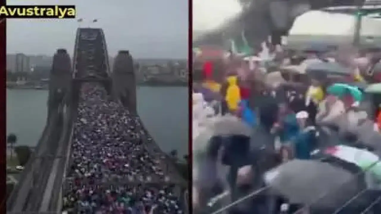 İnsanlık Filistin için kıyamda! Avustralya'da yaklaşık 90 bin kişi vicdanın sesini dinledi ve Filistin'e destek için yürüdü. Sidney’deki Harbour Köprüsü’nü adalet, özgürlük ve Gazze’deki soykırımın son bulması için haykıran kalabalık Avustralya hükümetine de Filistin devletini tanıma çağrısında bulundu.