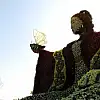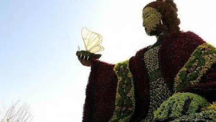 Kervanda ipek böceğini tutan Çin Prensesini anlatan heykel için yaklaşık 40 bin bitki kullanıldı. Prensesin saçının topuzundan, küpelerine, şalındaki motiflere kadar bütün detayların işlendi.