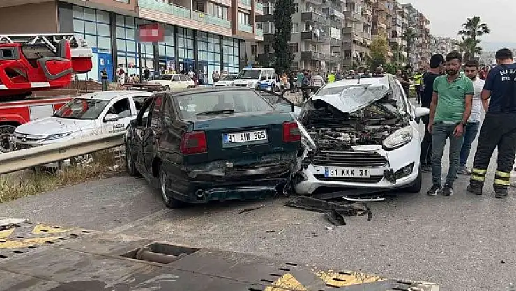 Hatay'ın İskenderun ilçesinde inşaat halindeki bir binanın çatısında intihara teşebbüs eden kişiyi izleyen sürücülerin direksiyon hakimiyetini kaybetmesi sonucu meydana gelen zincirleme kazada 5 kişi yaralandı.