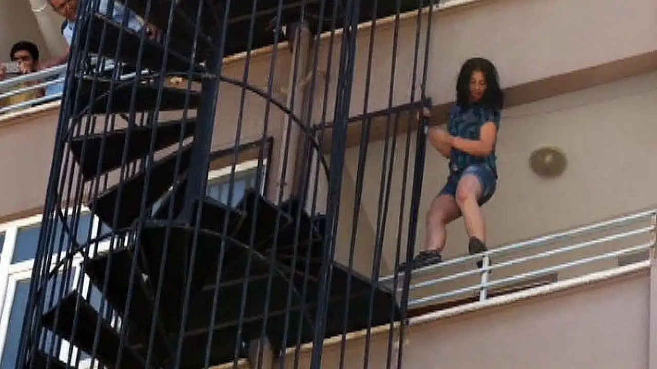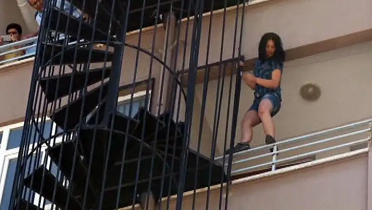 Konya'da bir binanın dokuzuncu katındaki balkona çıkarak intihar girişiminde bulunan kızın yangın merdivenine tırmandığı sırada kısa bir süreliğine dans etmesi dikkat çekti.