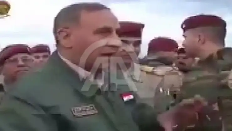 "Irak Savunma Bakanlığı" logosunu taşıyan görüntülerde, dönemin Savunma Bakanı Ubeydi, Haşdi Vatani olarak da bilinen gücün bulunduğu Başika kampını ziyaret ederek kendisini karşılayanlara destek veriyor.