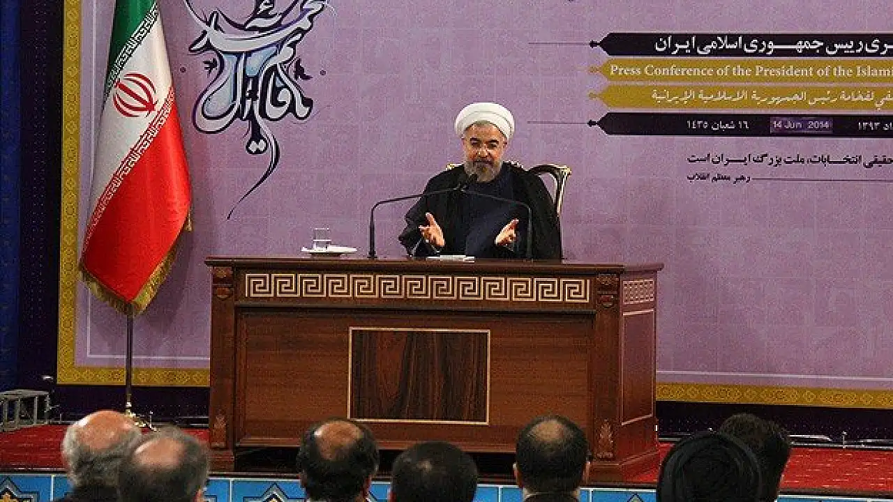İran Cumhurbaşkanı Hasan Ruhani, İran cumhurbaşkanlığı seçimlerini kazanmasının birinci yıl dönümünde düzenlediği basın toplantısında, hükümetin faaliyetlerine ilişkin bilgi verdi ve basın mensuplarının gündeme ilişkin sorularını yanıtladı.