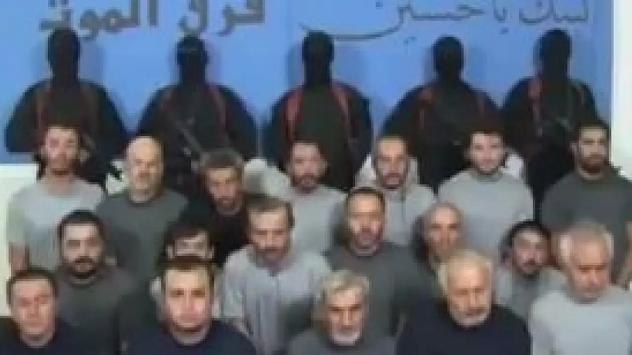 Sosyal medya üzerinden yayımlanan görüntüde hep bir arada oldukları görülen Türk işçiler isimlerini ve memleketlerini söylüyor. İşçilerin arkasındaki duvarda "Ölüm Timleri" ve "Lebbeyk ya Hüseyin" yazıları dikkati çekiyor. Örgüt militanlarının yüzlerinin maskeli olması dikkati çekiyor. İşçilerin arkasında ayakta duran yüzleri maskeli 5 silahlı militan görülüyor
