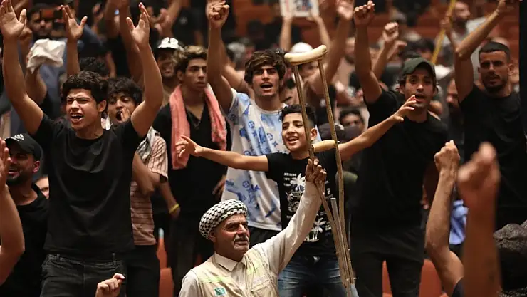 Sadr Hareketi lideri Mukteda es-Sadr'a bağlı binlerce kişi, Yeşil Bölge'nin içerisinde bulunan parlamento binasındaki dün başlattıkları oturma eylemlerini sürdürüyor. Sadr destekçileri öğlen namazını da cemaat olarak burada kıldı.