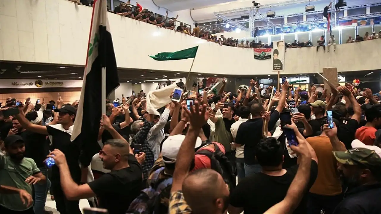 Mukteda es-Sadr destekçileri, İran destekli Şii Koordinasyon Çerçevesi'nin başbakan adayı Sudani'yi protesto etmek için bugün başkenti Bağdat'ta hükümet binaları ve yabancı misyon temsilciliklerinin bulunduğu Yeşil Bölge'yi basarak meclis binasına girmişti.