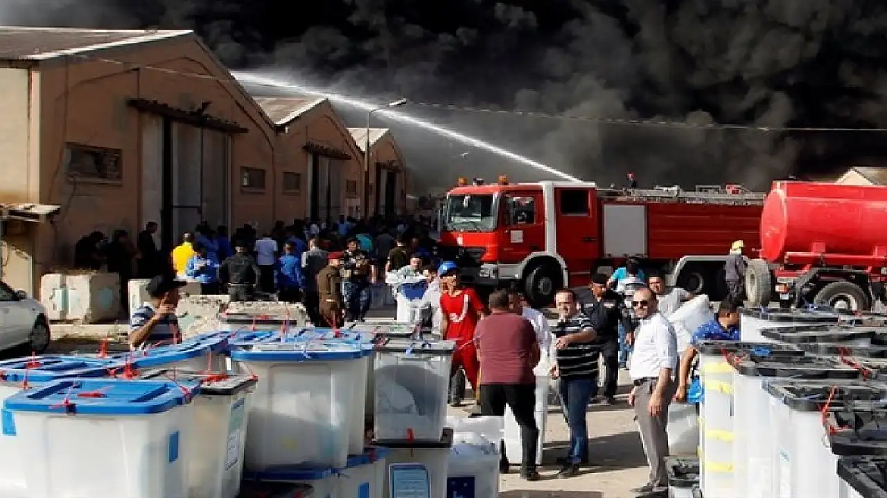 Irak'ta 12 Mayıs'ta gerçekleştirilen genel seçimlerin oy sandıklarının bulunduğu Irak Bağımsız Seçim Yüksek Komiserliği'ne ait depoda yangın çıktı.