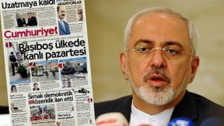 28 Şubat ve sonrasındaki süreçte "Türkiye İranlaşıyor" çığırtkanlığıyla irtica haberleri yapan Cumhuriyet, İran Dışişleri Bakanı Cevad Zarif'in kendisine özel yazdığı yazıyı ana sayfasından yayınladı. "İşgalci Orduyla demokrasi gelmez" başlığıyla yayınlanan Zarif'in yazısında "IŞİD'in yeni olmadığı, sorunların kaynağının ise Büyük Ortadoğu Projesi olduğu" iddia edildi.