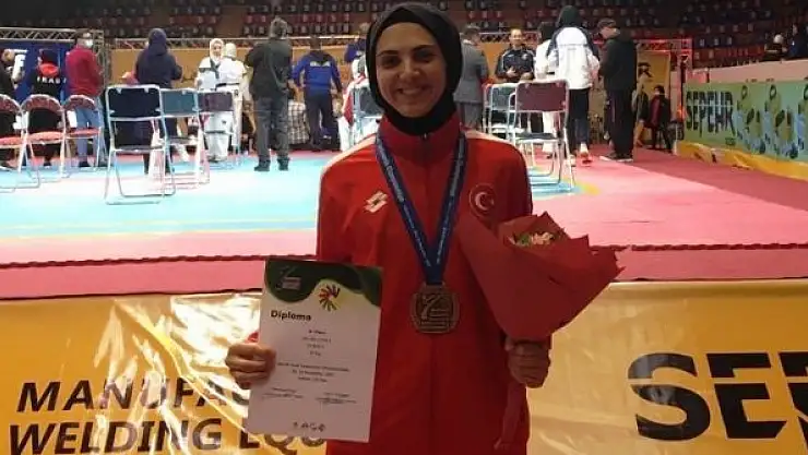 İran’da düzenlenen şampiyonada ülkemizi temsil eden Selma Canlı başarılı performansıyla dünya üçüncülüğü elde etti. işitme engelli sporculara yönelik düzenlenen Deaf Dünya Tekvando Şampiyonasına Meram Belediyespor damga vurdu. Ülkemizi temsil eden Meram Belediyesporlu Selma Canlı, Büyük Bayanlar 57 kiloda başarı göstererek madalya almaya hak kazandı. Dünya üçüncüsü olan Selma, Konya’ya ve Meram’a büyük gurur yaşattı.