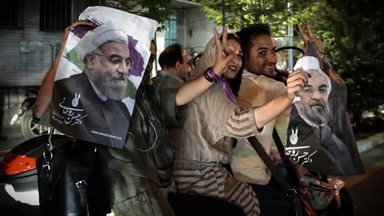İran'da reformistler, Hasan Ruhani'nin cumhurbaşkanlığı yarışını başkent Tahran caddelerinde kutladı.