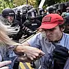 Az sayıdaki "İfade Özgürlüğü Mitingi" katılımcıları, ırkçılık karşıtlarının ezici çoğunluğun ve attıkları sloganların ardından mitinglerini erken sonlandırdı.