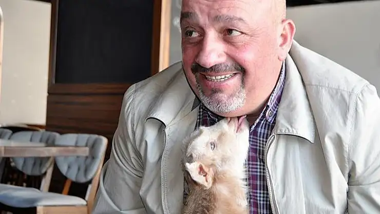 Bartın'da 25 yıldır ticaretle uğraşan Mehmet Bulut, 'Fıstık' adını verdiği 1 aylık oğlağı yanından ayırmıyor.