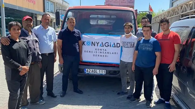 Konya Genç İş İnsanları Derneği (KONYAGİAD) orman yangınlarıyla mücadele eden Manavgat'ta yangından etkilenen vatandaşlar için yardım gönderdi.