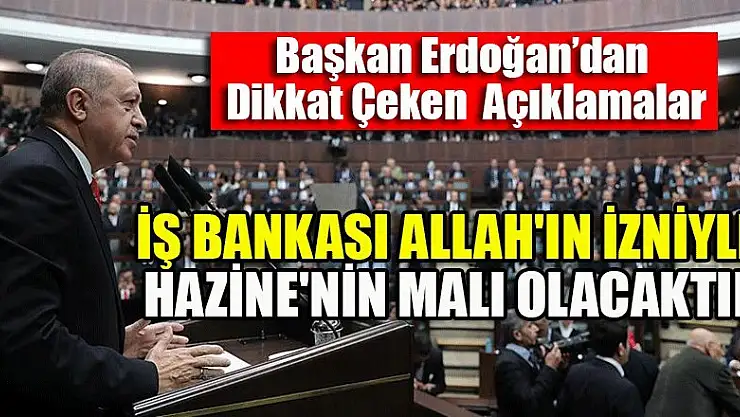 Cumhurbaşkanı ve AK Parti Genel Başkanı Erdoğan, 'İş Bankası Allah'ın izniyle Hazine'nin malı olacaktır. Bu parlamento, bu tarihi kararı da Allah'ın izniyle alacaktır.' dedi.